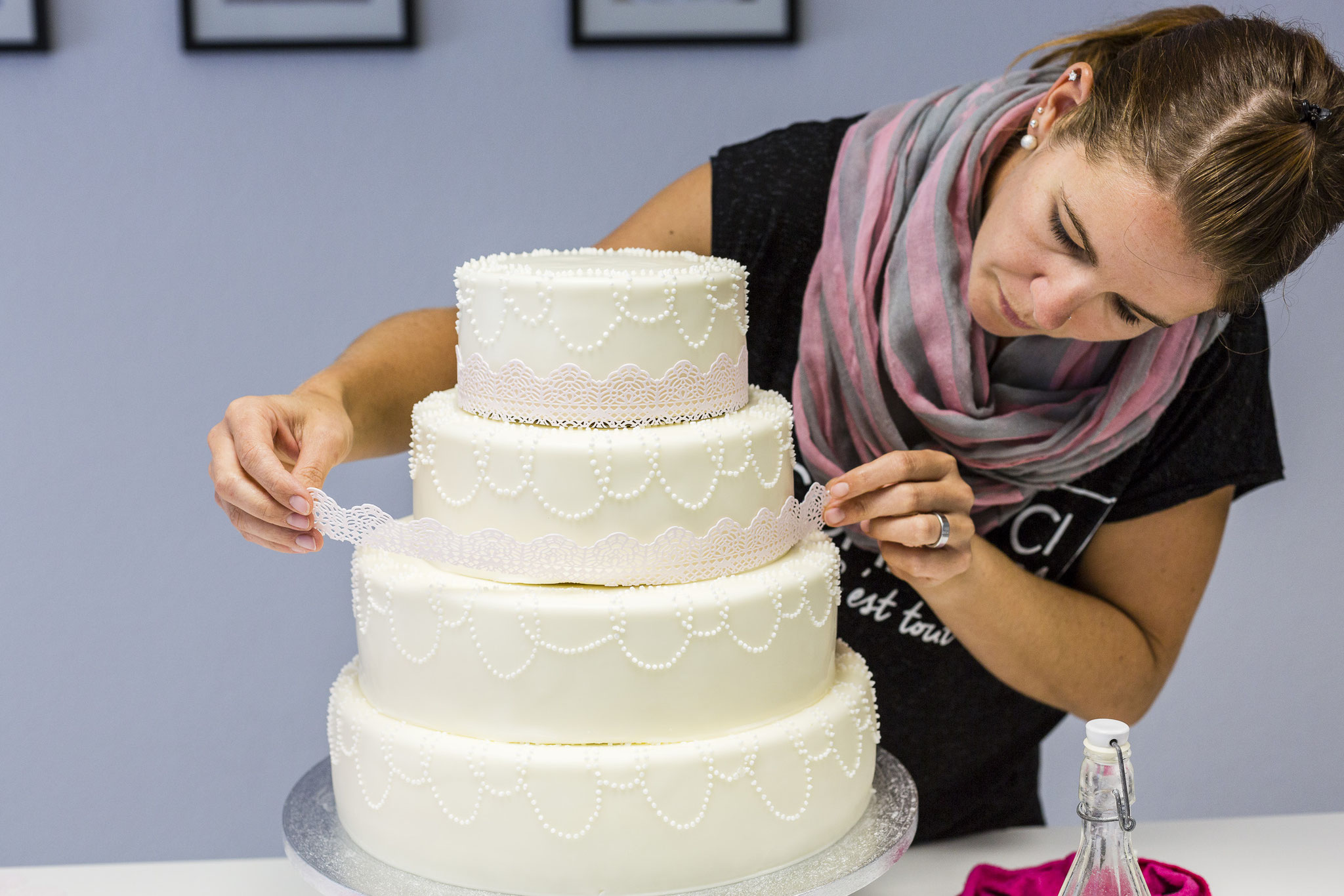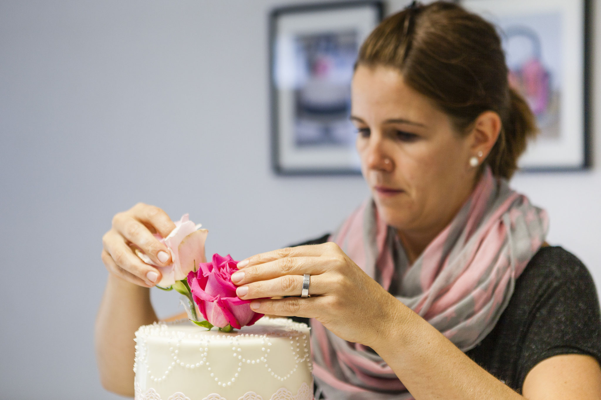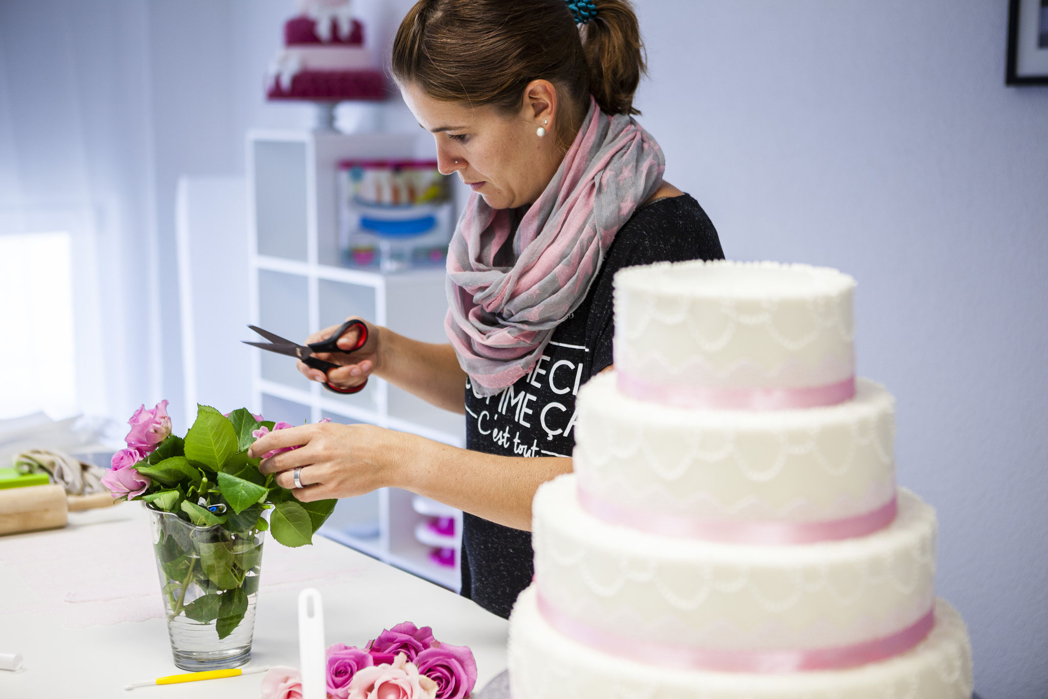 Das Making of einer Hochzeitstorte. Von der Planung der Torte, über Vorbereiten, Füllen, Überziehen, Eindecken bis zum Ausdekorieren. Fotografiert und mit vier anderen Selbständig erwerbenden aus Interlaken in einem Buch "SÄLBSCHTÄNDIG NR.1" dargestellt by MAMO